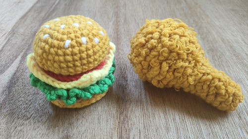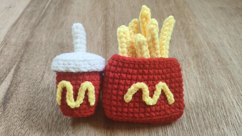 小食玩(汉堡、炸鸡腿、薯条、可乐)钩织法