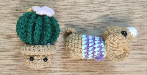 仙人球盆栽、小狗挂件钩织法
