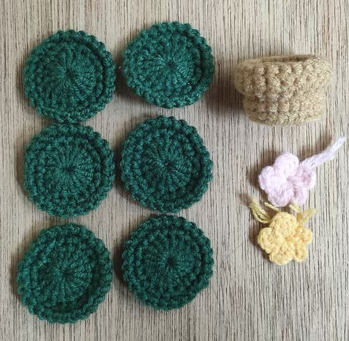 (1)仙人球*6片(绿色毛线)