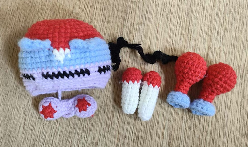 (1)头和身体(红色、蓝色、白色、黑色、紫色毛线)
